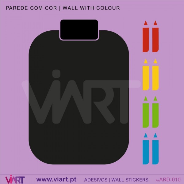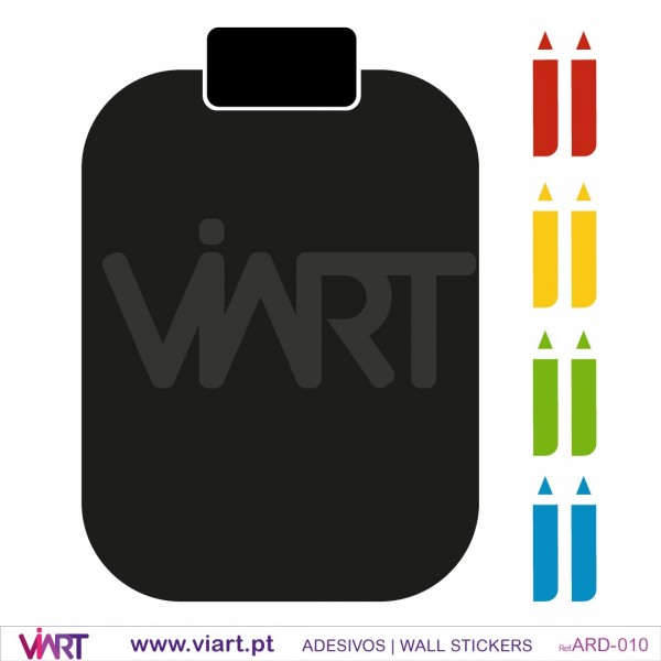 Quadro em vinil ardósia ideal para as crianças! Inclui 8 lápis em vinil autocolante normal, com os quais pode fazer a sua própria personalização. As cores dos lápis na foto são amarelo torrado, vermelho tomate, azul claro e verde lima, mas pode escolher as suas cores favoritas. Para isso basta que as mencione na secção "Mensagem" quando estiver a efectuar a sua encomenda.