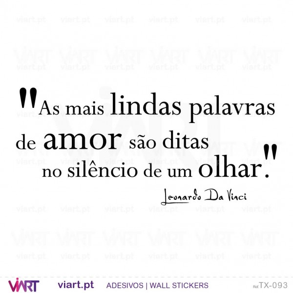 "As mais lindas palavras de amor são ditas...olhar." Leonardo da Vinci - Vinil Decorativo Parede!